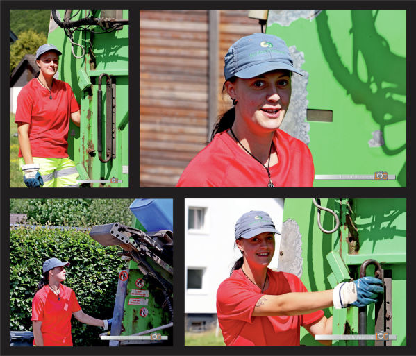 Die hübsche Müllmaid... gut gelaunt bei der Arbeit!